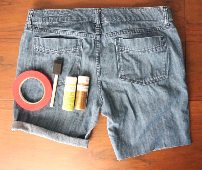 Cutoffs are probably the oldest or at least the most common refashion in the history of denim. I've had this pair of jeans for a while. I always felt like the length was just a little too short and rarely wore them. So, I couldn't resist cutting them up, grabbing some paint and going to town. It's really very quick and easy to do and will give your cutoffs a little extra flair.